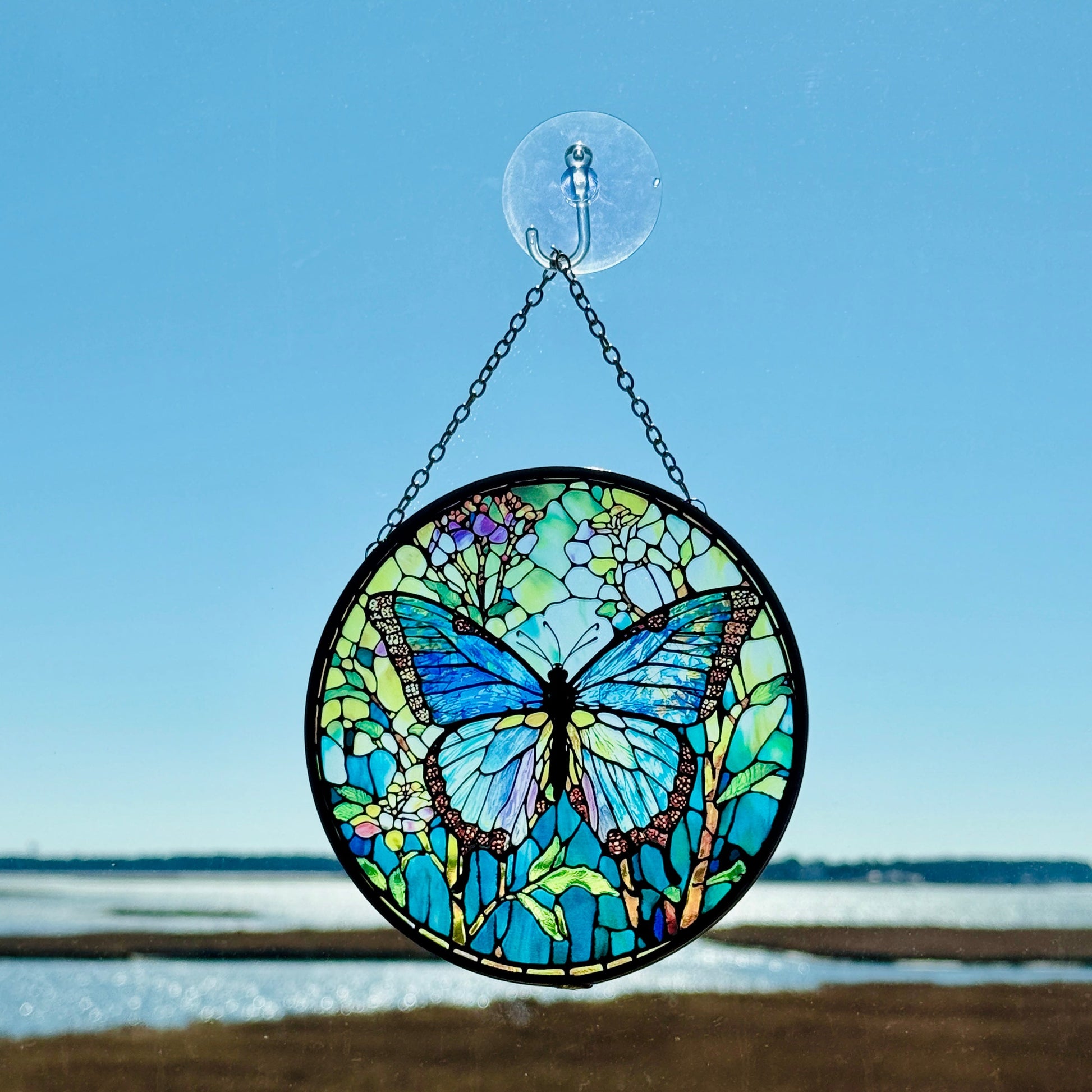 Welcome the beauty of spring into your home with these Butterfly Glass Suncatchers, available in two designs.
